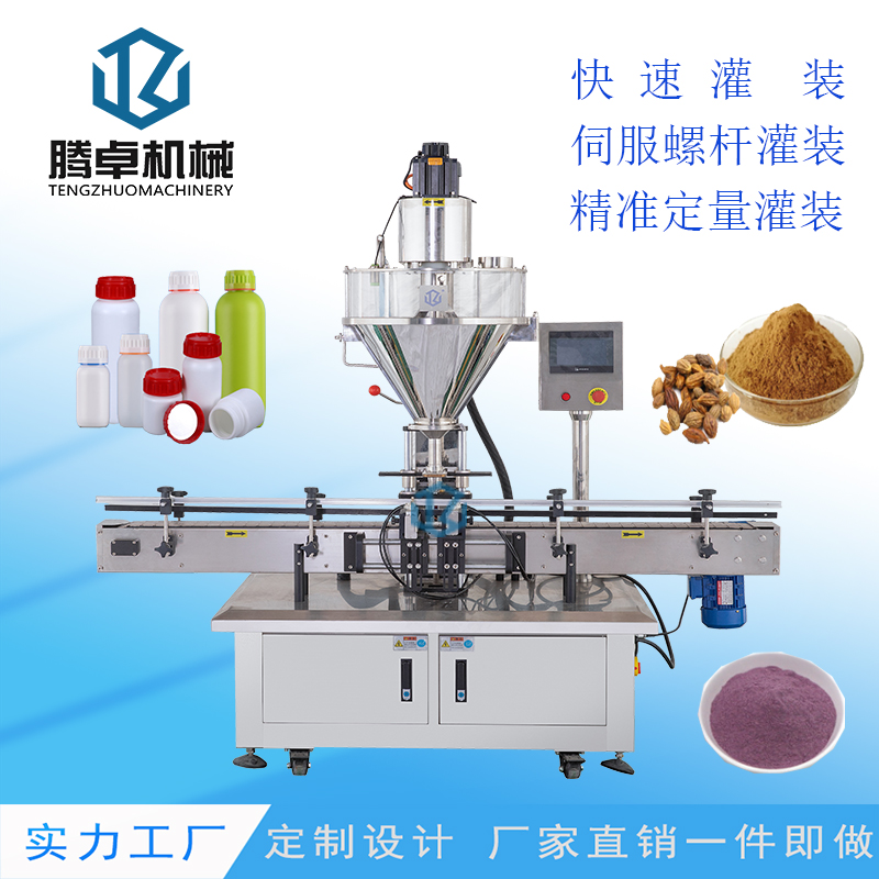 粉劑灌裝機按照國家GMP標準設計,本機可與理瓶機、給蓋壓蓋機、貼標機等設備組成流水線。