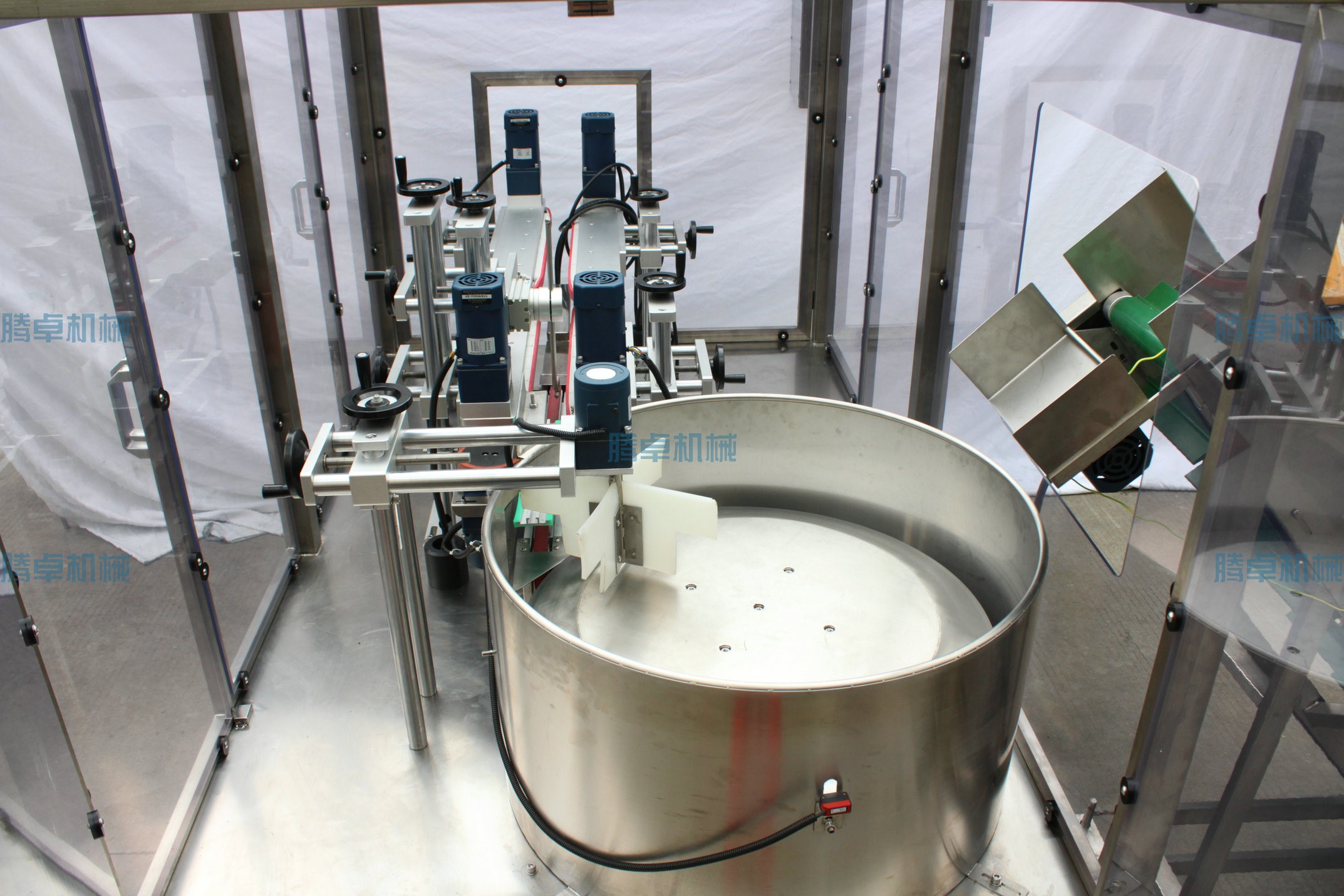 本機采用了兩級對口的機構,確保針管插入率100%,無論藥具歪斜程度較大或瓶口較小,都無須擔心。本機灌裝速度連續(xù)可調。